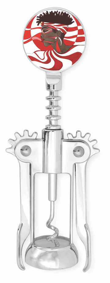 Measurements: 2 3/8" x 6 3/4" with a 1.5" round 2-sided decorated top. Winged metal Corkscrew...
