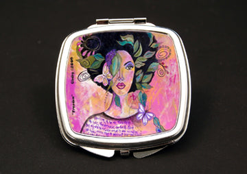 Measurements: 2.625” x 2.875” x .25” Two Compact Mirrors, one on the top and bottom...