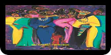 Checkbook covers featuring Black Art, History & African Fabric prints. They have a sturdy nylon cover & slip pockets for credit cards, ID & plastic flap for checks & checkbook.