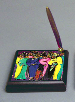 Measurements-4"x 4" x ¾ African American Pen Sets by Okra Stewdio. A black and gold...