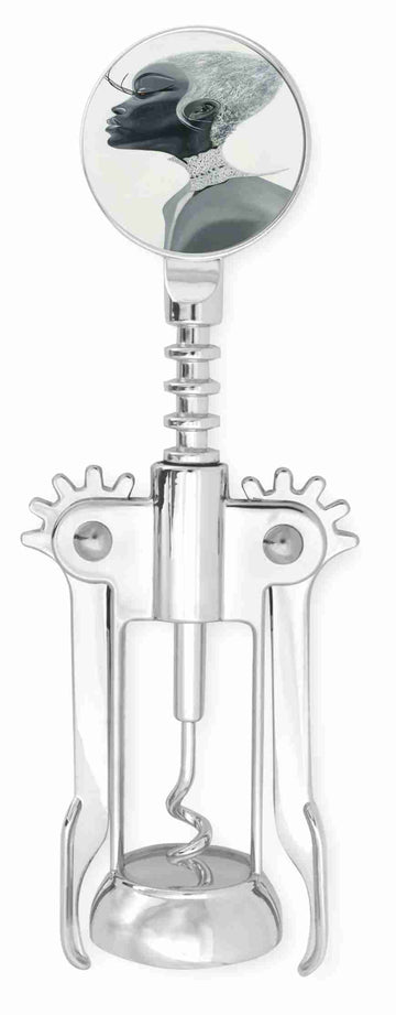 Measurements: 2 3/8" x 6 3/4" with a 1.5" round 2-sided decorated top. Winged metal Corkscrew...