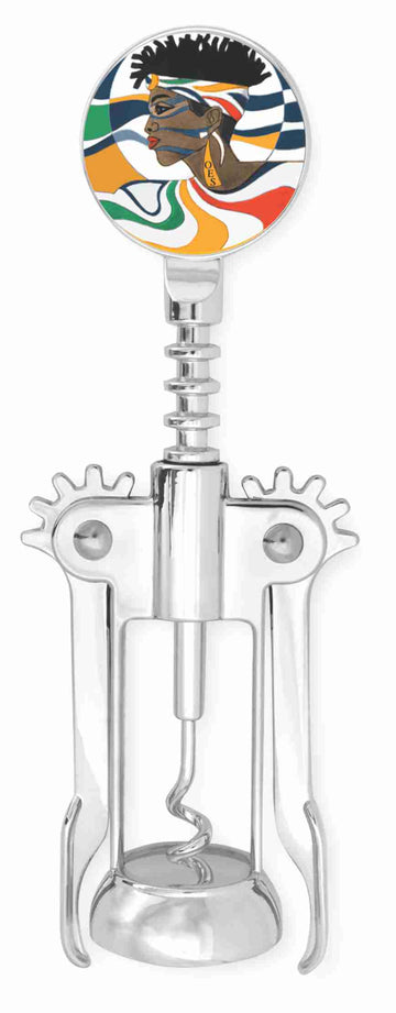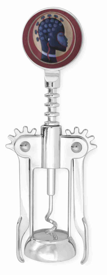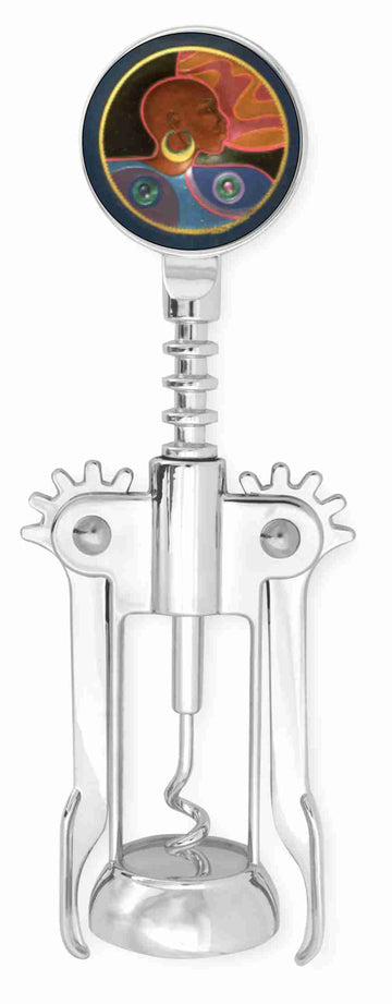 Measurements: 2 3/8" x 6 3/4" with a 1.5" round 2-sided decorated top. Winged metal Corkscrew...