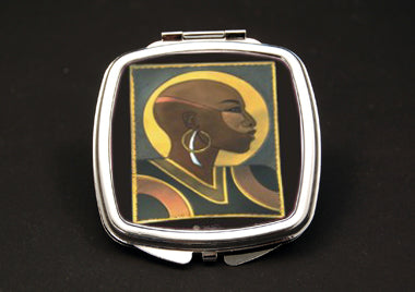 Two Compact Mirrors, one on the top and bottom enclosed in a hinged silver tone case with a locking closure.