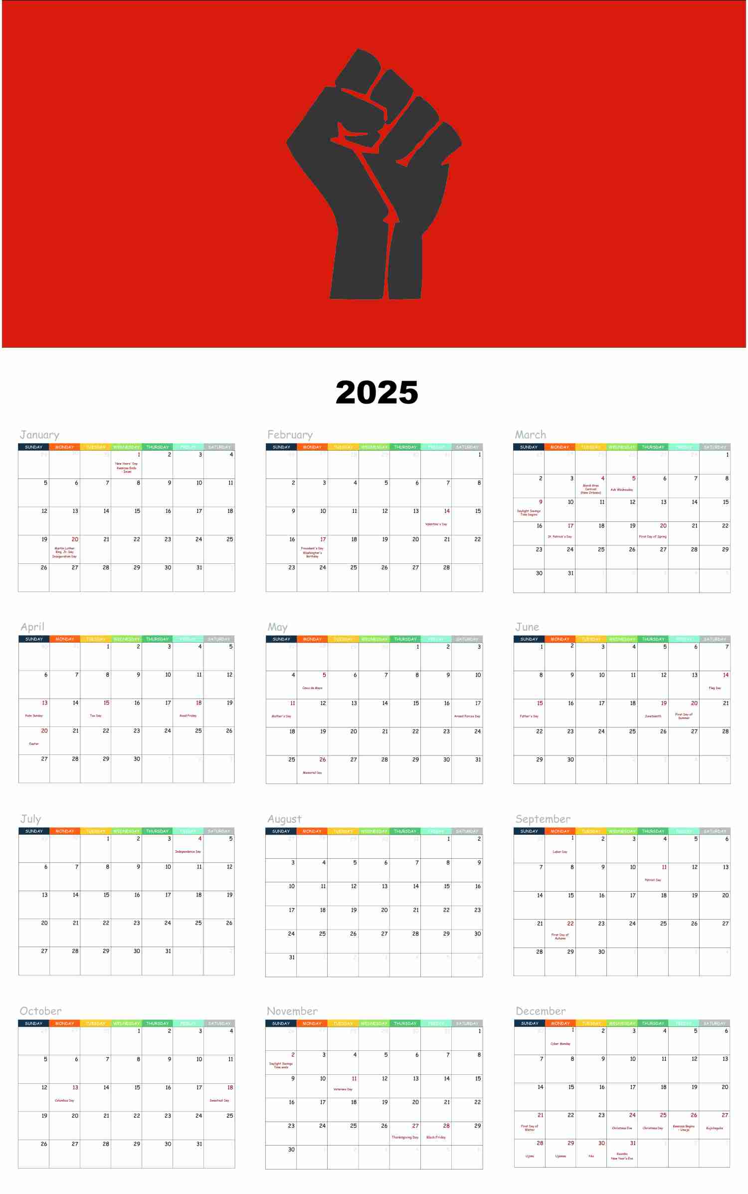 Our 2025 Poster Wall Calendar displays the whole year January to December.