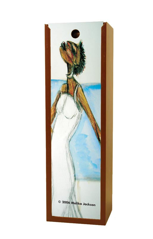 Wine Bottle Box with rosewood finish & decorated sliding door. Box holds standard wine bottle (750ml). Makes excellent barware, man cave & house warming gift.