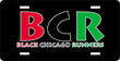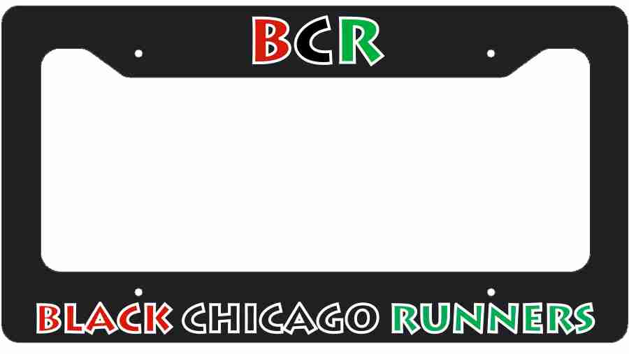 Black Chicago Runners License Plates for automobiles, bicycles and motorcycles.