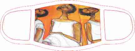 Non-medical grade dust mask decorated with Afrocentric or Black Art reproductions.