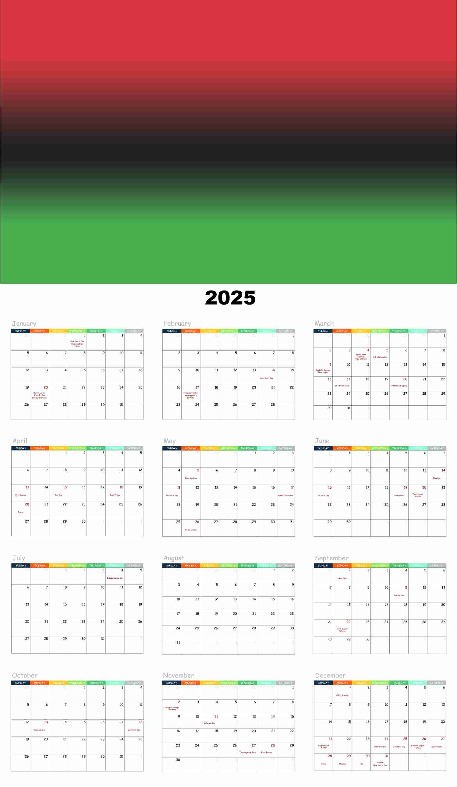 Our 2025 Poster Wall Calendar displays the whole year January to December.