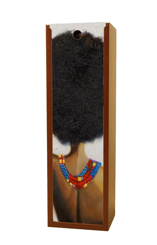 Wine Bottle Box with rosewood finish & decorated sliding door. Box holds standard wine bottle (750ml). Makes excellent barware, man cave & house warming gift.
