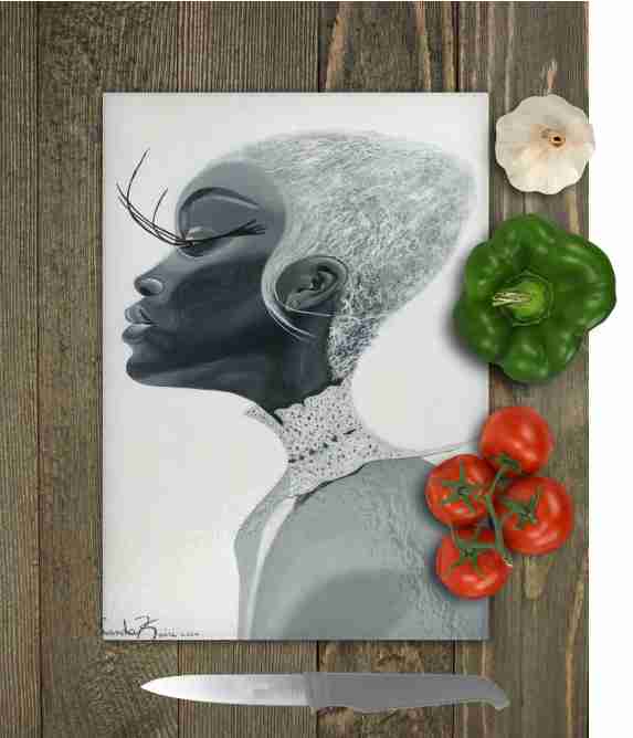 African American Cutting Board (chopping block), made of tempered glass that resists stains & odors, can also be used as Hot Plate. Use for all your gourmet & everyday cooking needs: As a cutting surface or to prevent hot dishes from burning kitchen counters & tabletops.